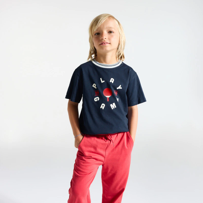 Style sportswear & tendance ! Ce t-shirt affiche un message positif pour une bonne pratique du sport. Les garçons le portent aussi en ville. Jersey doux. Coupe droite. Col rond côtelé rayé contrasté. Manches courtes. Base droite.n